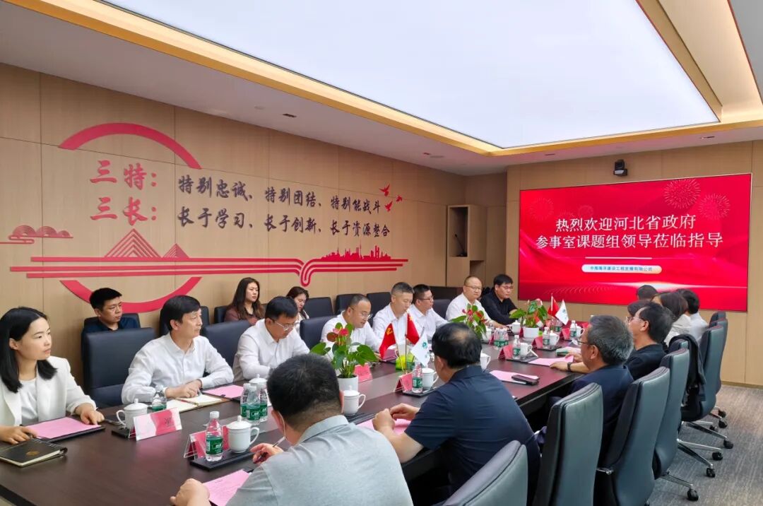 2026年4月9日,河北省政府参事室,省政府参事、煤田地质局原局长张路锁、省政府参事、省生态环境厅原副厅长、原一级巡视员吕竹青、省政府参事、河北科技大学化工学院教授赵风清、省政府参事、省发改委原一级巡视员高俊钊、省政府参事、省国资委一级巡视员李光、省政府参事、省高级人民法院副院长、一级高级法官徐茂明、河北省宏观经济研究院副研究员吴譞、河北省政府参事室参事工作处四级调研员程林一行到访中海建设,公司党委书记、总经理郑伟煌热情欢迎到访人员,双方通过座谈交流与实地考察调研,共商新发展机遇。